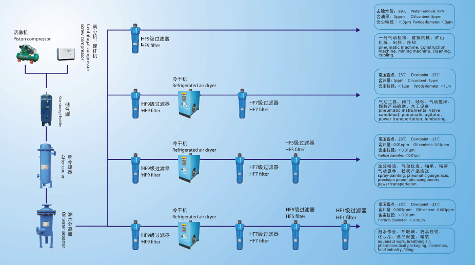 當要求壓縮空氣的“壓力露點"低于零度時,吸干機是壓縮空氣處理更好的設備。